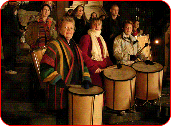 Surdo Section rehearsing on the Victoria Monument steps in Liverpool